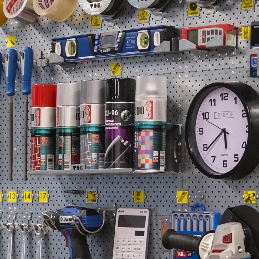 размещения инструмента perfostena, так и без неё. В составе системы крепится алюминиевыми вытяжными заклёпками 4 х 6 мм. на перфорированную панель. На другие поверхность крепится стандартными саморезами с плоским прижимом.