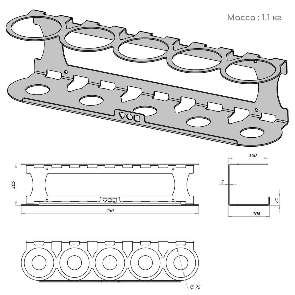 Держатель предназначен для удобного и надёжного размещения большого разнообразия ёмкостей в зоне выполнения работ