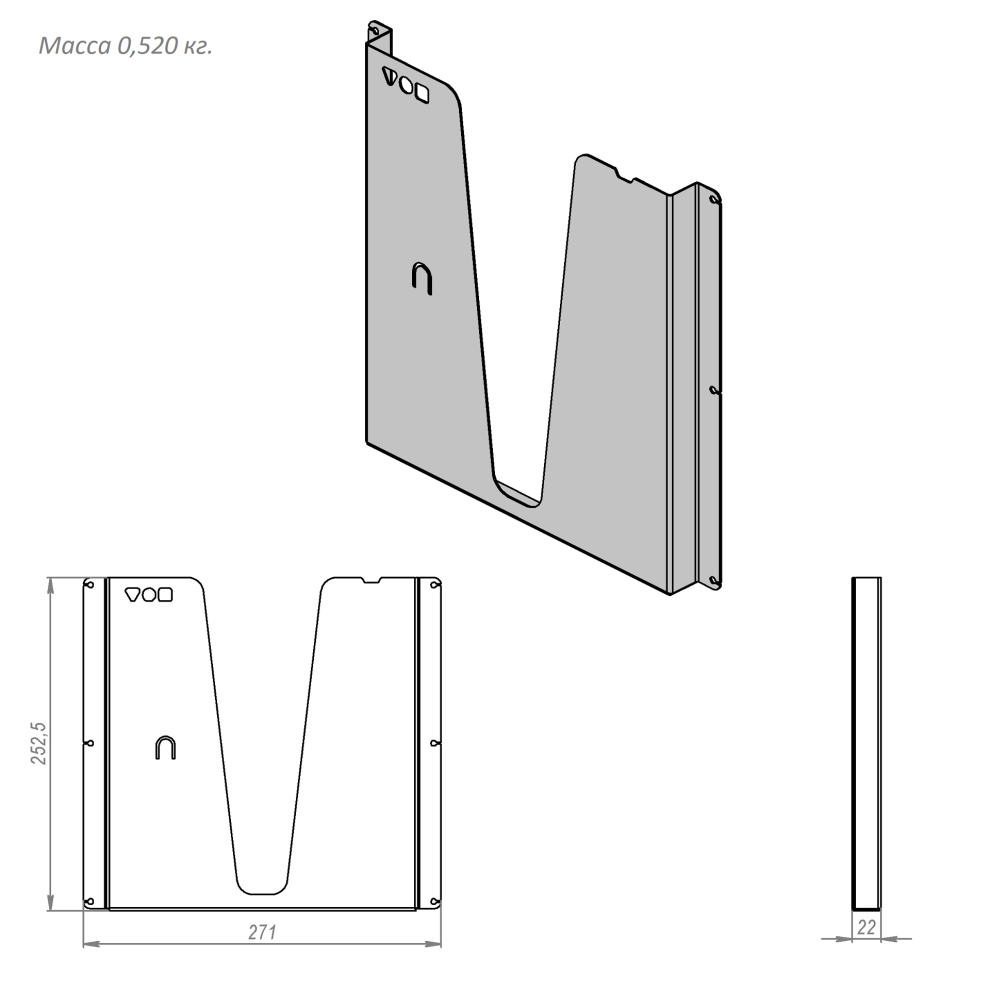 на перфорированную панель. На другие поверхности крепится стандартными саморезами с плоским прижимом.