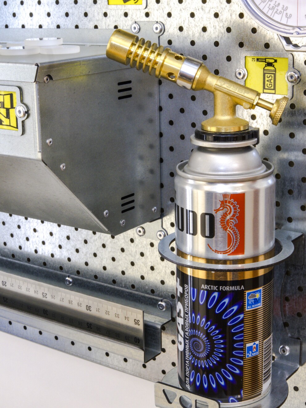 Держатель для размещения ёмкостей таких как МАП газ, смазки типа WD-40, растворители,