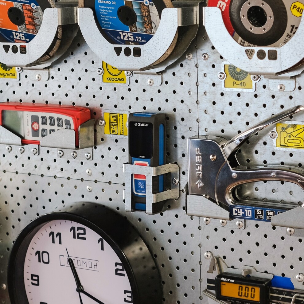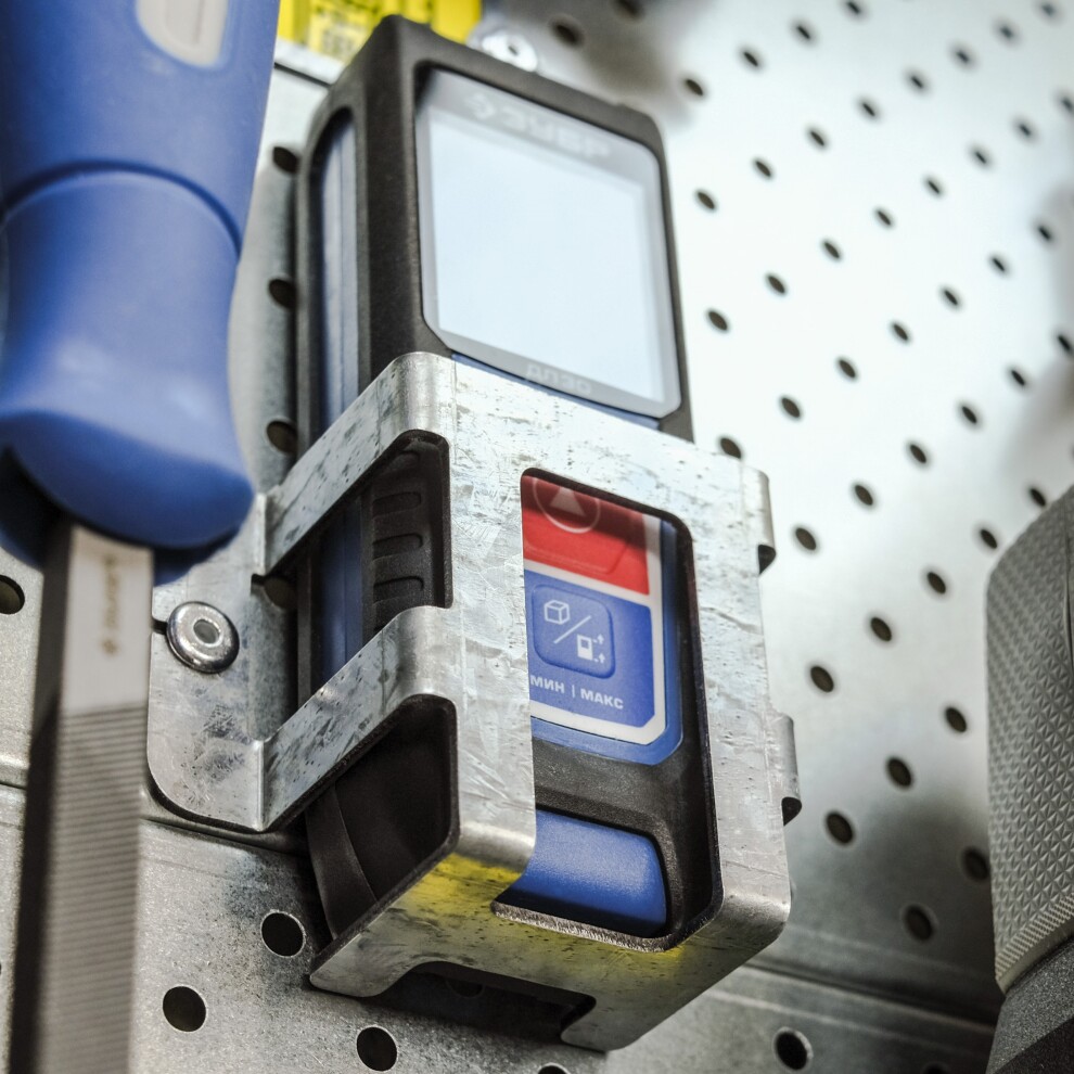 Держатель предназначен для дальномера DL-30. Так же его можно использовать для размещения любых подходящих по размеру инструментов, расходников и ёмкостей.