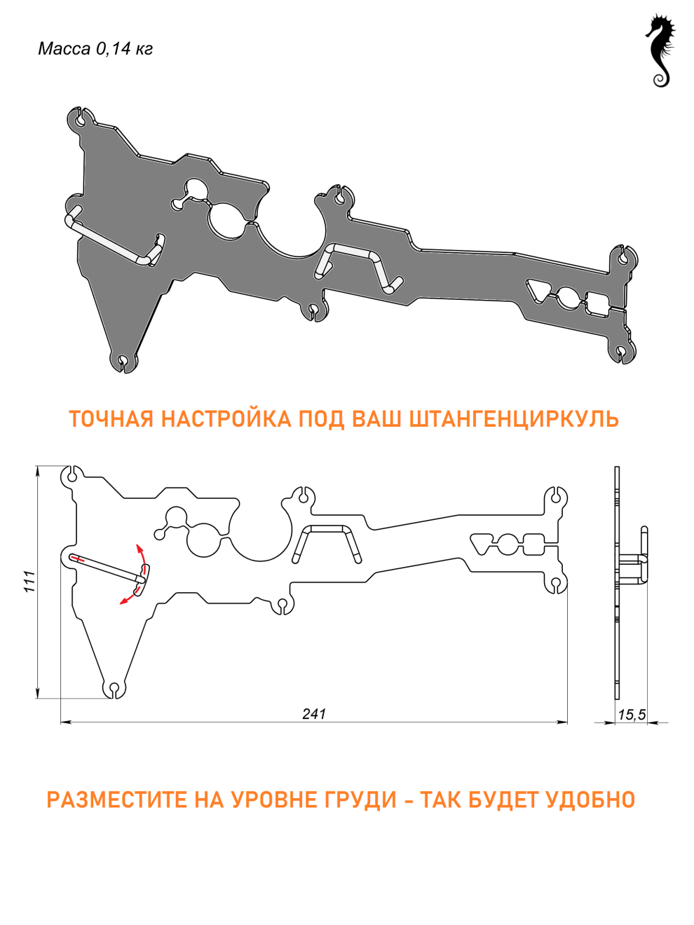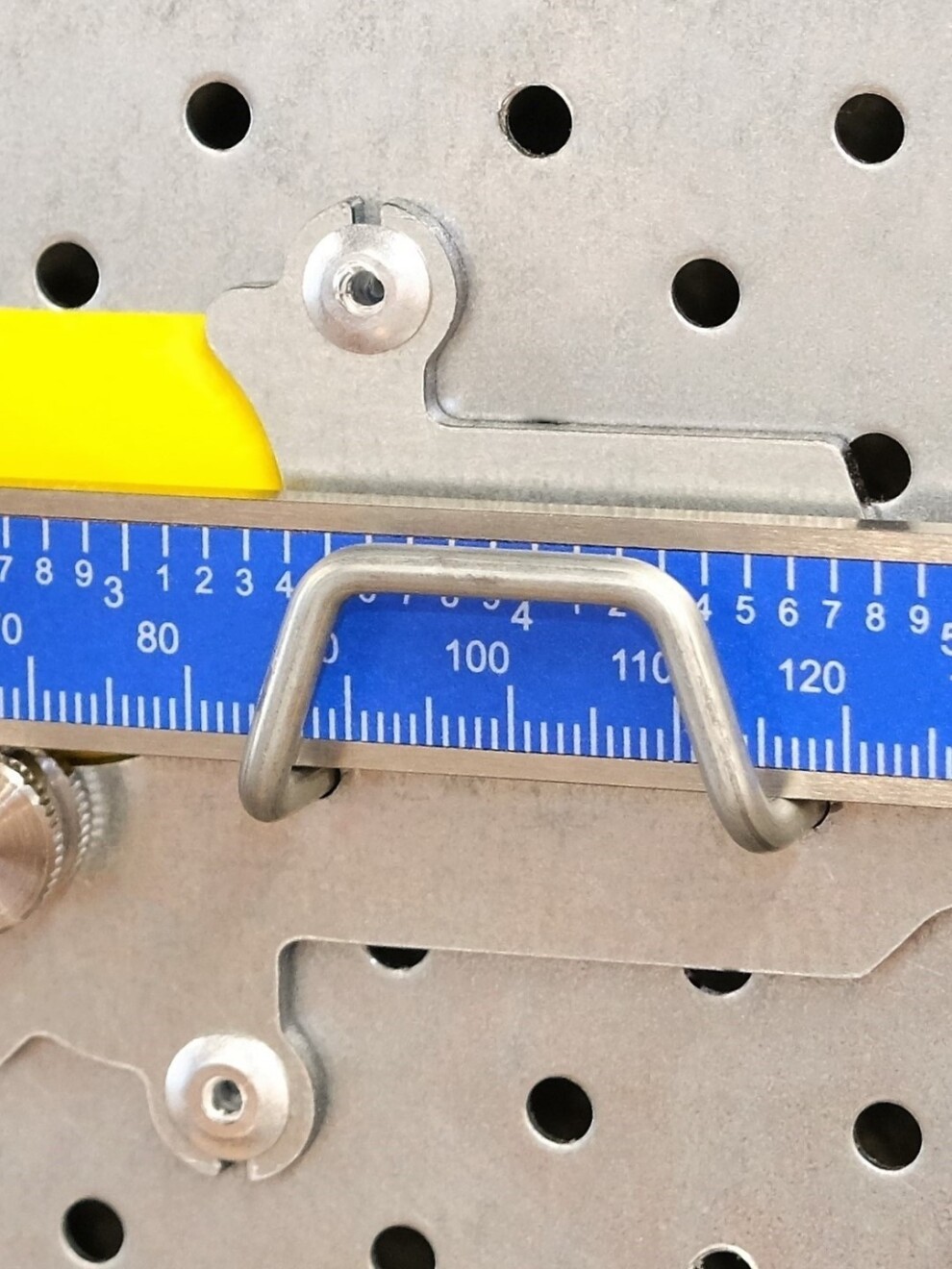 L 150 и L 200 мм непосредственно в зоне выполнения измерений, «под рукой». Имеет регулировку фиксирующей скобы под разные приборы. Рекомендуется использовать с обозначающими размер шильдами.