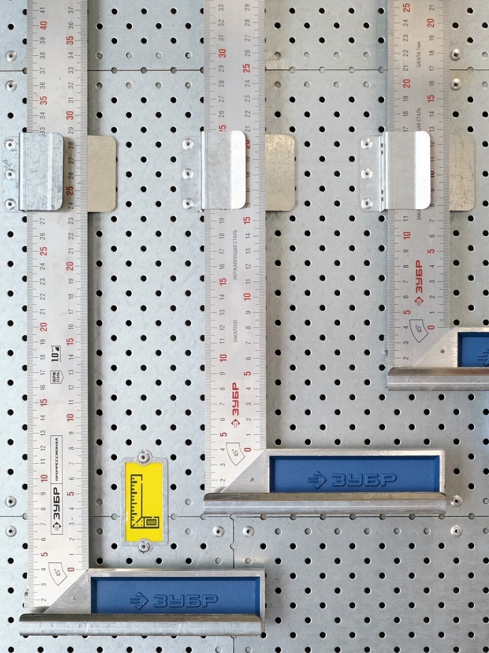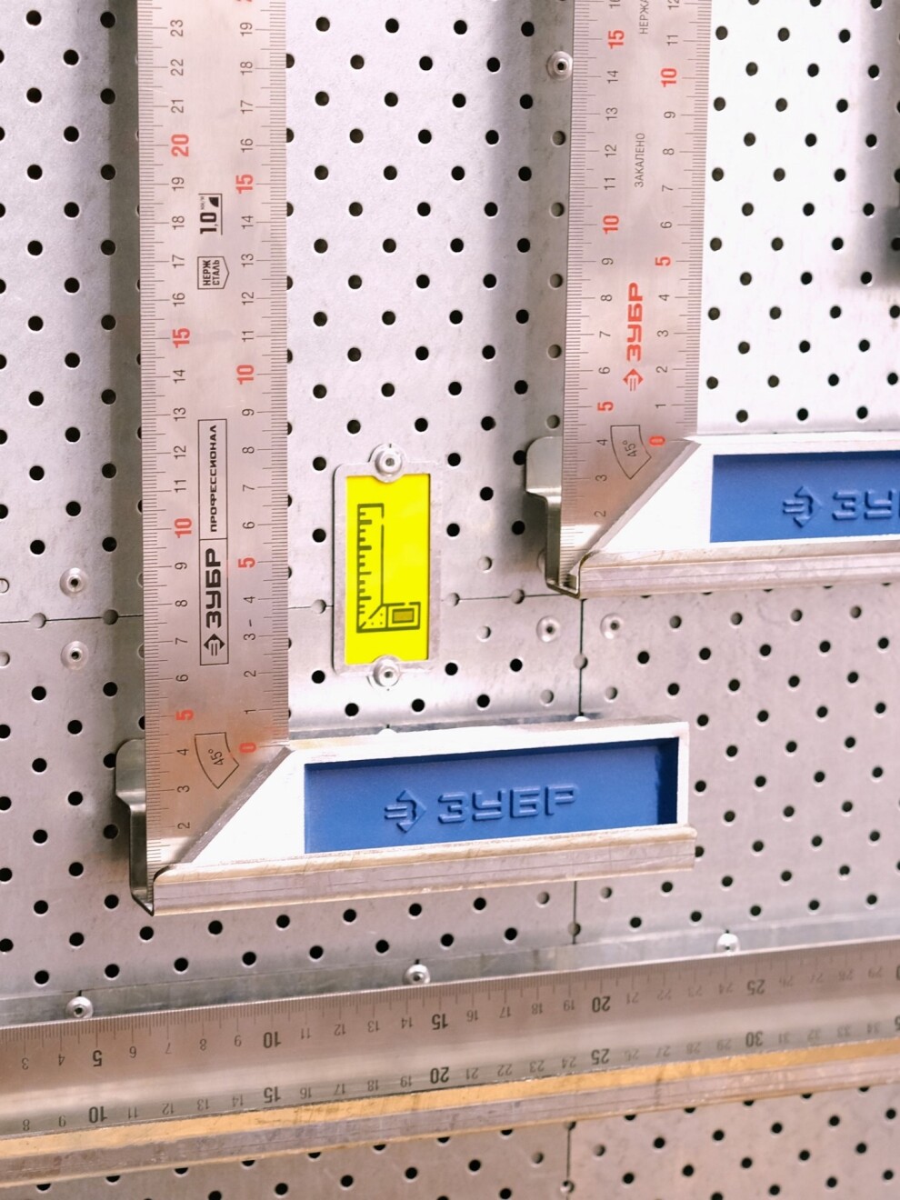 Держатель предназначен для слесарных и столярных угольников, для их надёжного и безопасного размещения.