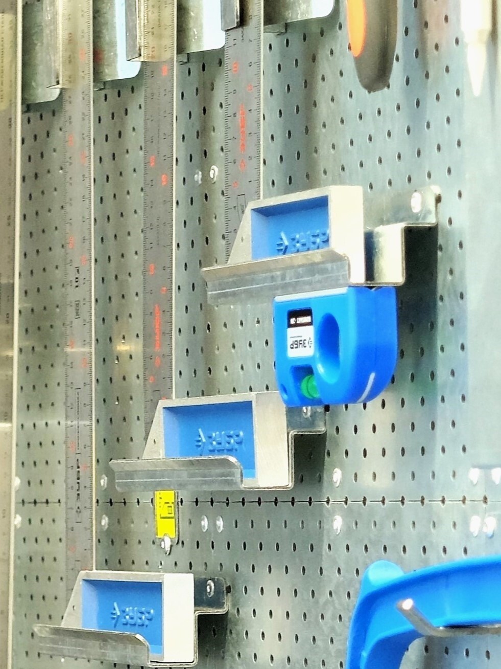 Держатель угольников изготовлен из оцинкованной стали 1.5 мм. Прочная и удобная конструкция рассчитана на эксплуатацию в производственных условиях. Используется как в составе системы размещения инструмента perfostena, так и без неё. В составе системы крепится алюминиевыми вытяжными заклёпками 4 х 6 мм. на перфорированную панель. На другие поверхность крепится стандартными саморезами с плоским прижимом.