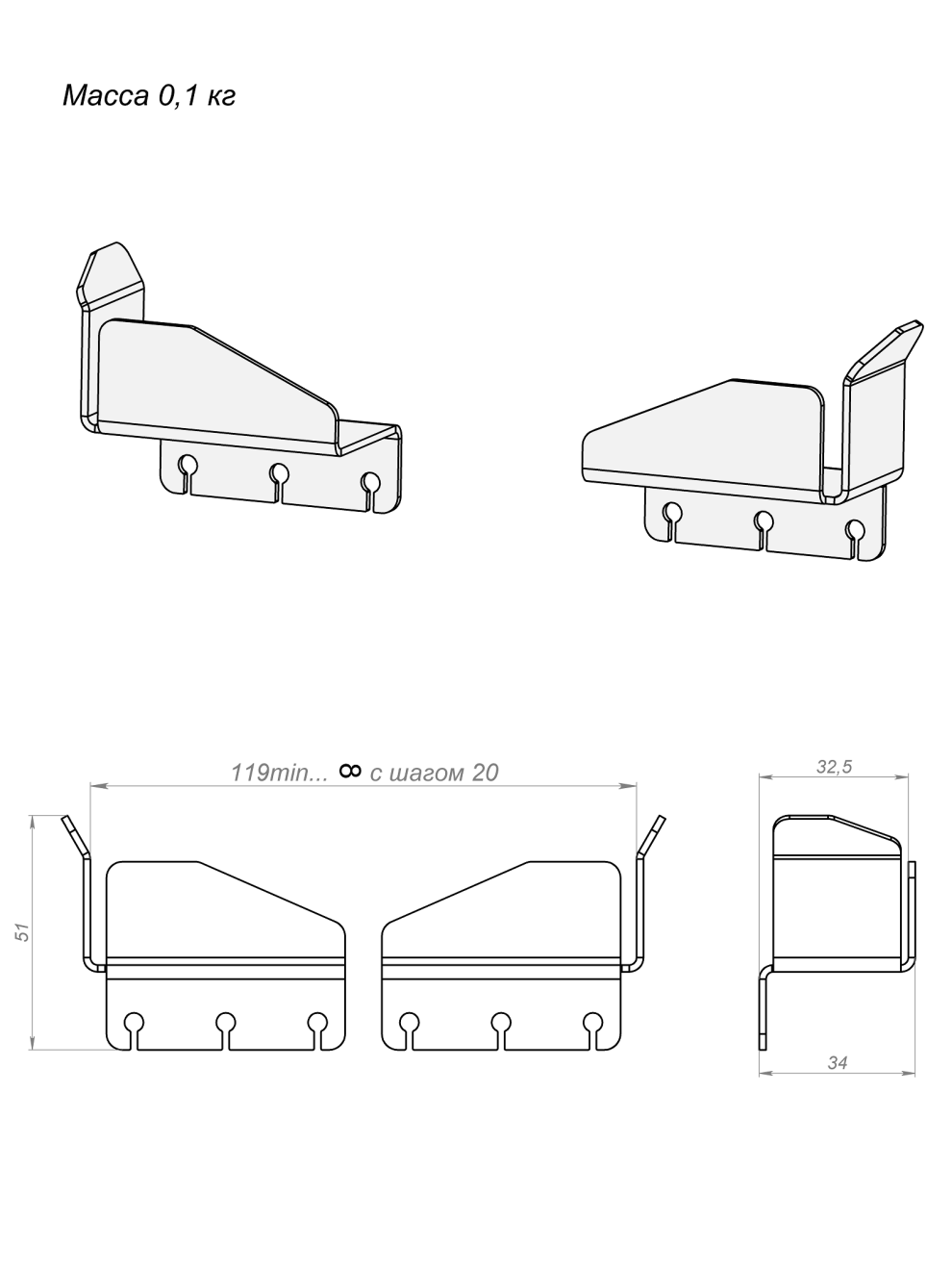 Держатель изготовлен из оцинкованной стали 1.5 мм. Состоит из двух частей.
