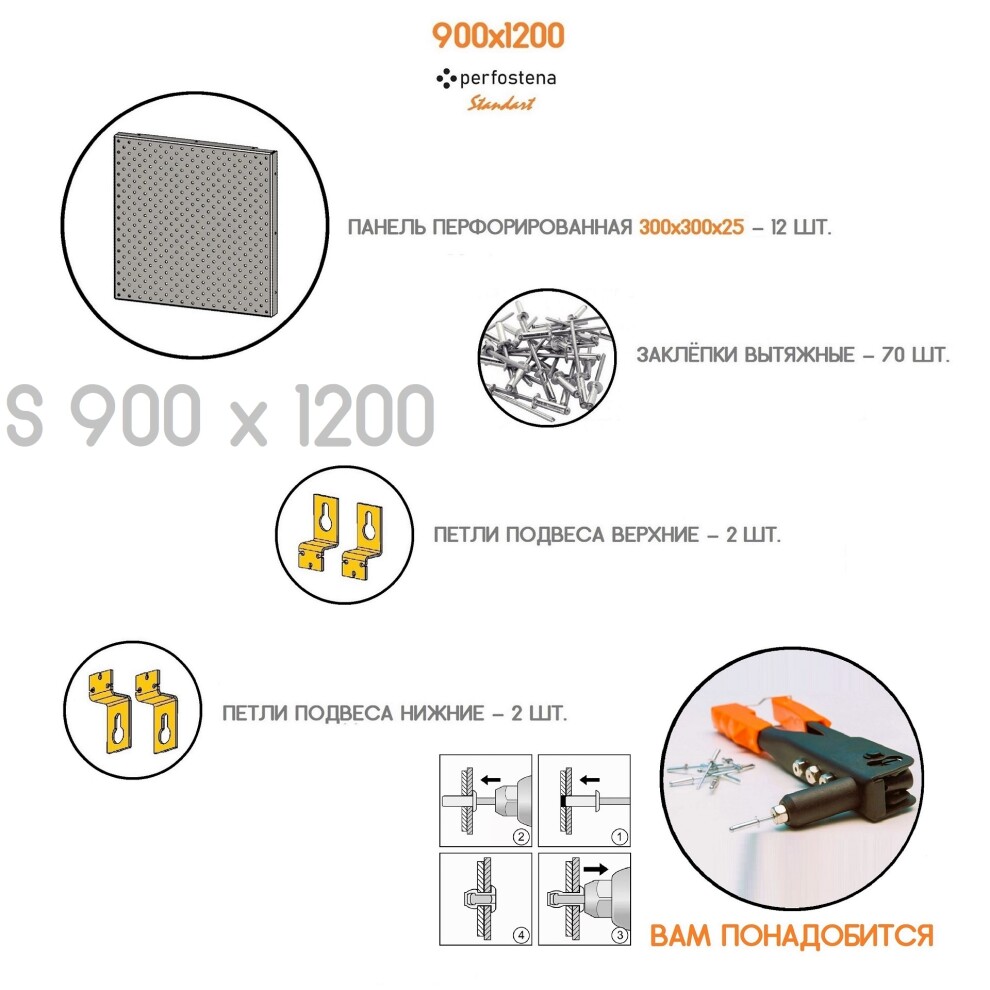 Двенадцать перфорированных панелей 300х300х25(S 900х1200) perfostena
