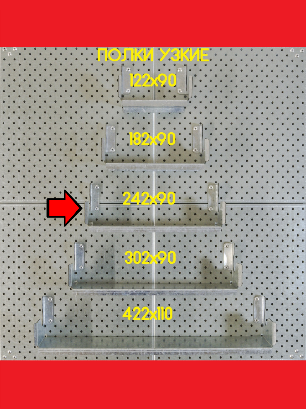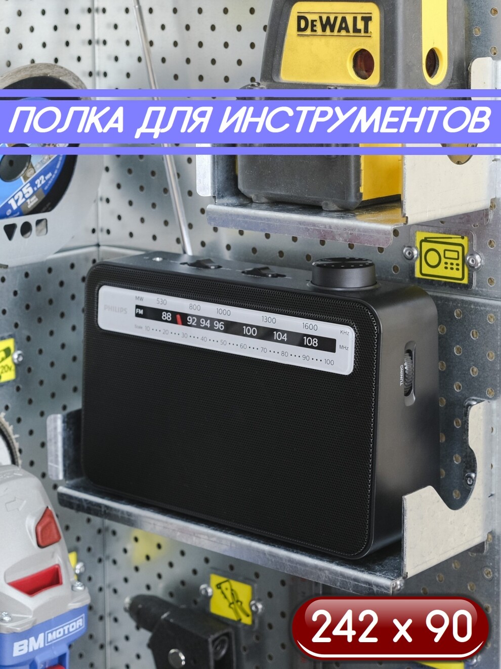 Полка предназначена для размещения инструмента в зоне выполнения работ. Высокие боковые ограничители с выемками для надёжного хранения и удобного использования.