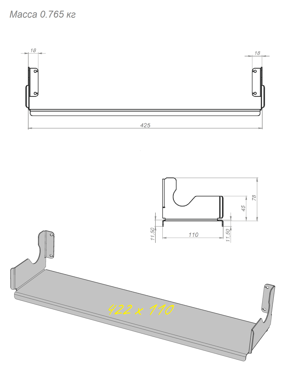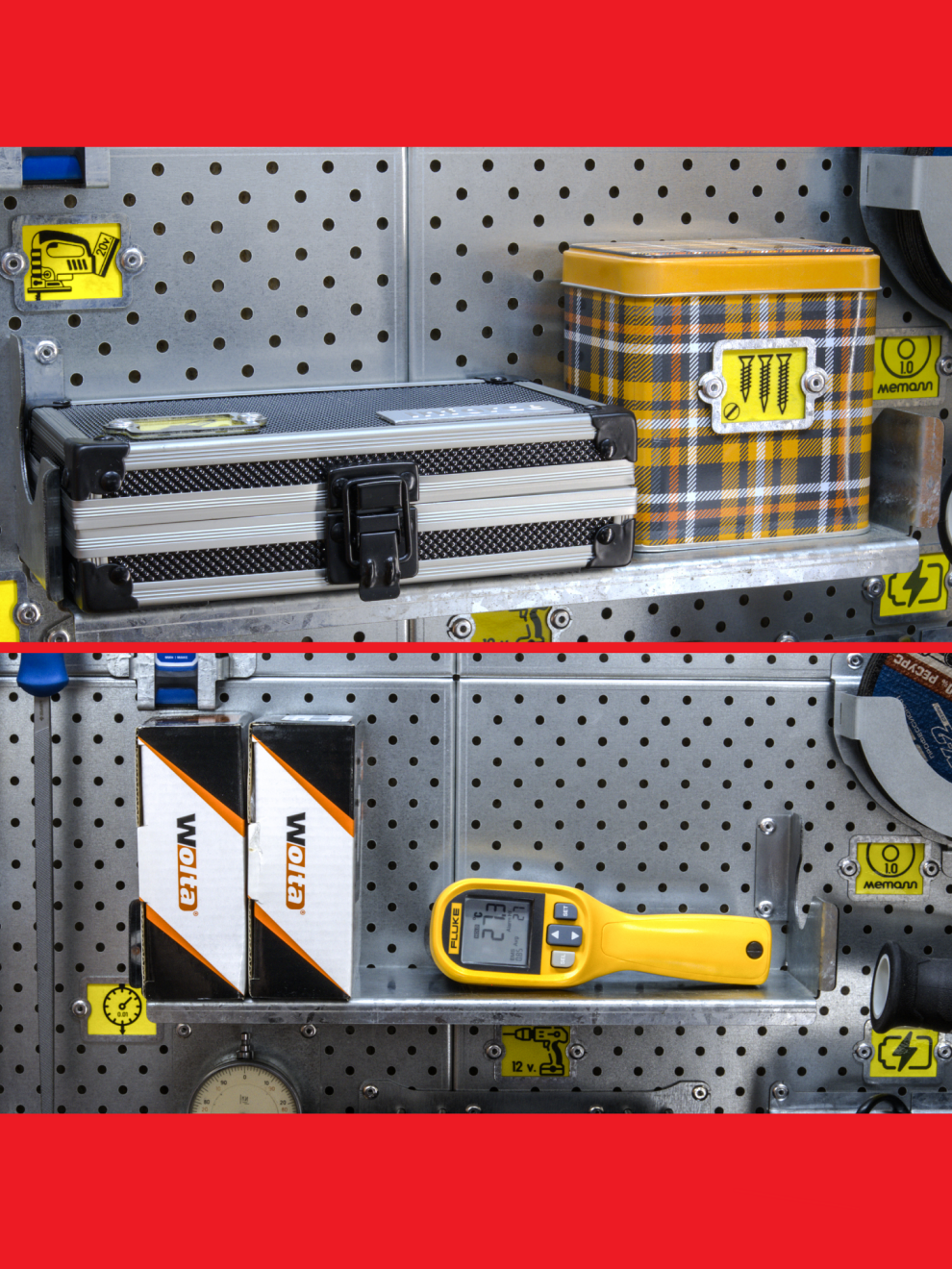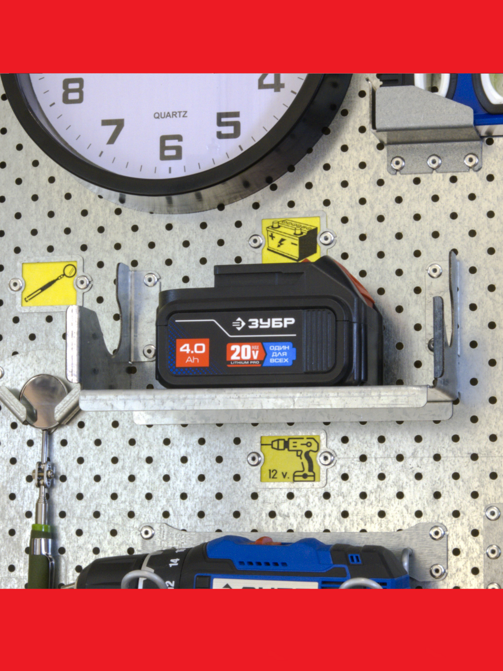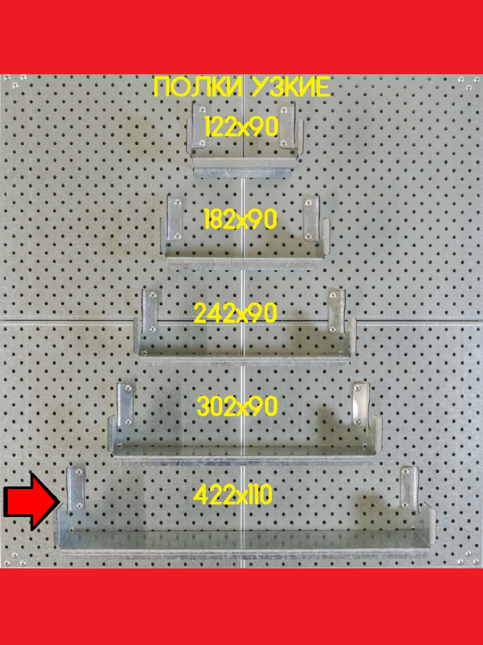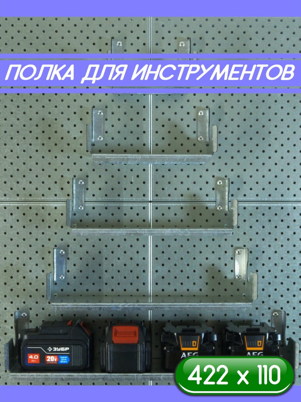 Полка предназначена для размещения инструмента в зоне выполнения работ. Высокие боковые ограничители с выемками для надёжного хранения и удобного использования.